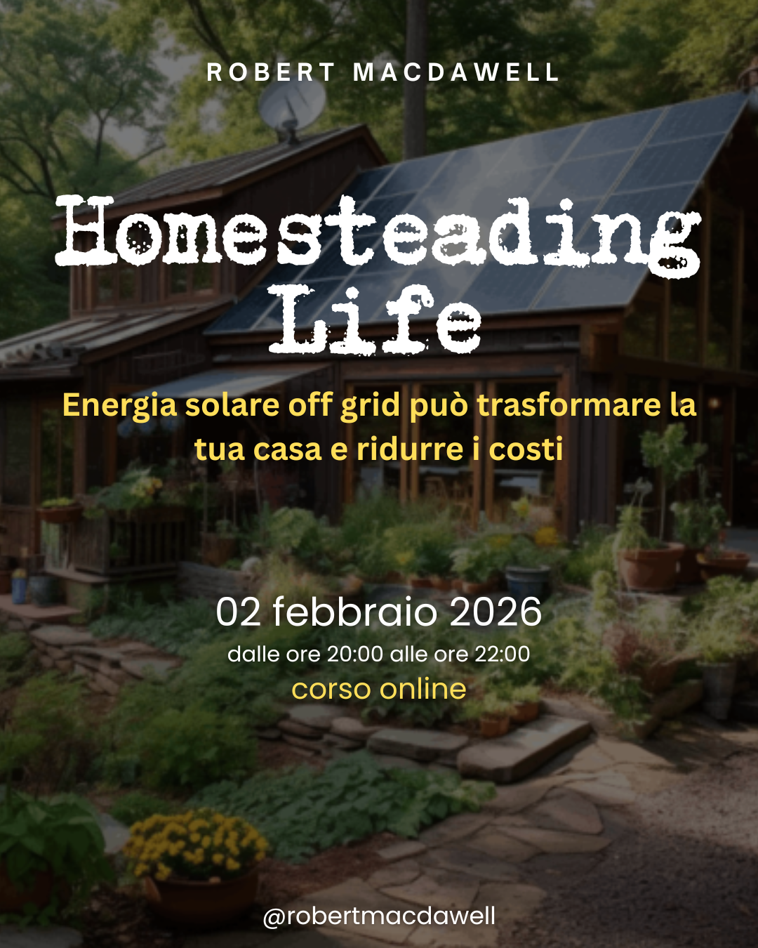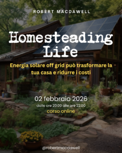 In questa serata parleremo di consumi, di come sconnettersi dalla rete e montare il nostro impianto solare attagliato alle proprie esigenze. Parleremo di componenti e di come sfruttare al meglio ogni impianto implementandolo con almeno un sistema di back-up.